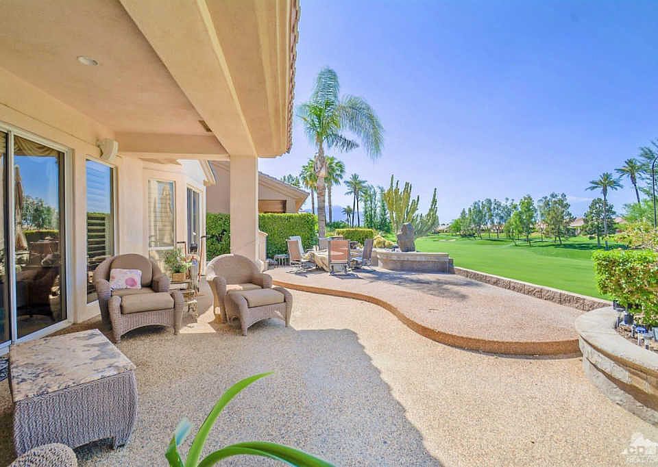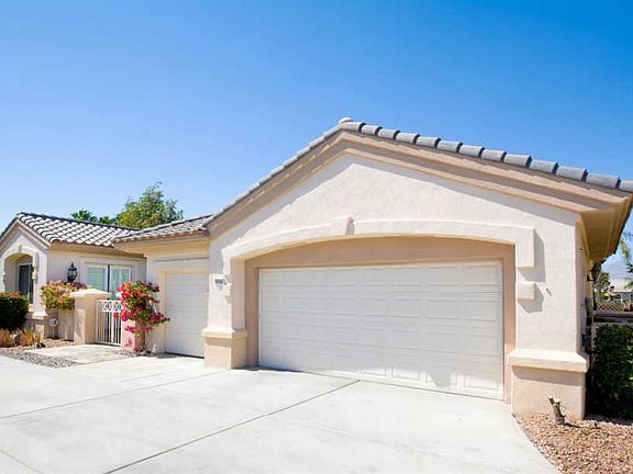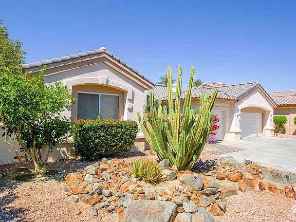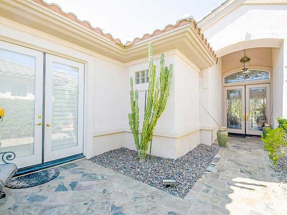 This 2,323 SQ FT (EST.), 3 Bedroom, 3 Bathroom Monaco Model floor plan is located on the 4th fairway of the Sun City Palm Desert, Santa Rosa Golf Course. The home is situated at the end of a quiet cul-de-sac. As you walk up you are invited to enter this beautiful home by a gated courtyard and dual leaded glass doors at the main entrance. Enjoy beautiful vistas of a lake to the East or San Jacinto Mountains to the West. This model includes a sitting area in the guest bedroom and a great Master Bathroom. The back patio opens via large sliders that show off the spectacular views. The back patio area exemplifies the desert lifestyle and includes an outdoor hearth, built-in BBQ and outdoor bar that opens to the kitchen - ideal for entertaining. The two Car plus golf cart garage, with a separate door, has plenty of storage. If you desire privacy, security, and the lifestyle provided in the world famous Sun City Palm Desert do not miss this opportunity! Act now!