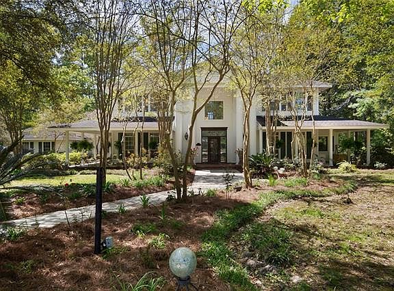 WOW! Check out this beautiful home sitting on nearly 3 acres with access to navigable waterway. This beauty has everything you are looking for! Southern charm with covered porches, 10 ft ceiling height cabinets, double oven, breakfast area, huge pantry! 6 bedrooms, 4 full baths and 2 half baths. Master includes custom built-ins in your double over-sized closets, jetted tub, double vanities and a make-up vanity. Studio apartment (or awesome game room) has separate entry, kitchenette and tons of room!