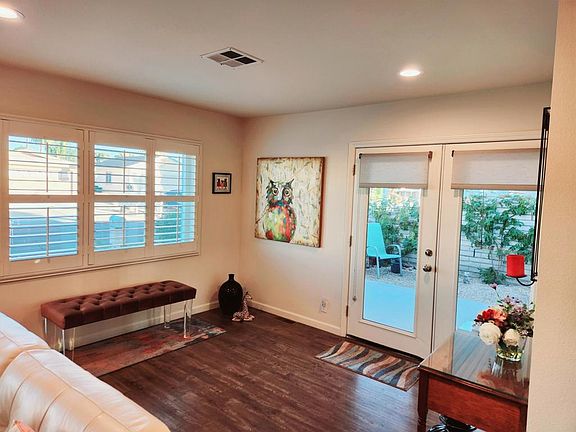 This Exceptional 2bed/2bath home has great curb appeal and completely remodeled! The open floor plan with large dual pane windows and French doors creates a light, bright, spacious feel. Extensive updates with modern decorative touches have been added. The gourmet kitchen has white cabinetry, large Island with seating area, quartz counters, newer stainless-steel appliances, a large pantry for added storage, and recess lighting throughout. The living room has custom shutters and the other rooms have custom window shades. Both bathrooms are fully remodeled with new vanities light fixtures, custom tiles in walk-in- showers and dual sinks in the main bath. The bonus room is currently being used as a den but can be used as an office, craft room or extra sleeping area to accommodate your out-of-town guests. The A/C was replaced in 2021 and there are ceiling fans throughout. This special home is conveniently located on a quiet interior street between the main gate and the clubhouse. You OWN the land and the low $326 monthly HOA fee includes FREE Golf, Cable TV, Internet, trash removal and 24/7 Guard Gate Security and so much more! Palm Desert Greens Country Club is one of the nicest and most popular 55+ communities, nestled in the heart of the desert near many of the area's great golf courses, parks, hiking trails, restaurants, shops, casinos & events. Truly one of the best buys in the Valley!