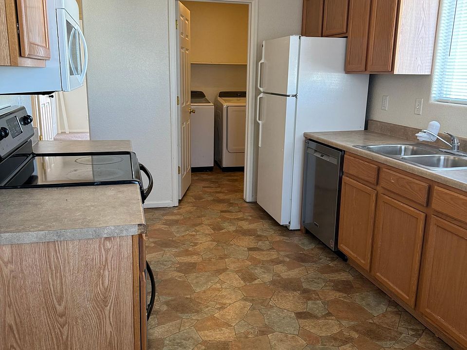 2 Bed, 1.5 Bath second floor at Ariel Apartments. Small Balcony off master bedroom and washer and dryer included in unit. Newer Washer/driver/microwave/dishwasher in unit. This is a second floor, NO-SMOKING UNIT. Small-medium dogs allowed for an extra $25/month fee. No cats allowed in this unit. HOA, Water, Sewer and trash included in rent. Tenant pays for Gas and Electric. Washer and dryer included in each unit. 1 year lease with estimated $37 application fee, full rent and security deposit($950) due at signing. Please call/text to view apartment.