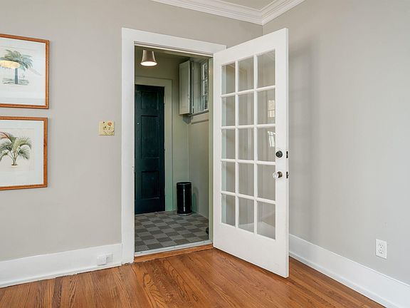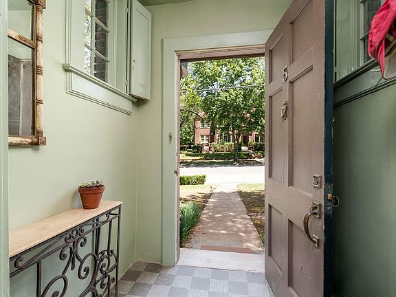 A rare find in historic Forest Park! This main level home features a private entrance, a unique feature of this 1920's complex. The large light filled living room features tall ceilings, real hardwood floors and paneled shutters over the wide original windows. Formal dining room opens to living room. Updated kitchen includes classic styled cabinetry, topped with solid surface counter tops, new dishwasher and microwave. Gas cooking (with downdraft venting) and walk in pantry complete the roomy kitchen. A spacious primary bedroom with walk in closet AND a storage room. Tiled bathroom offers a deep jetted soaking tub and linen closet for storage. This home relates so well to the exterior with very few steps and the private entrance makes this one feel like a single family home. The most square footage (1289 per tax records) for the the money! A very short stroll to Forest Park village, enjoy shops and dining options just outside your front door! Hurry to see!