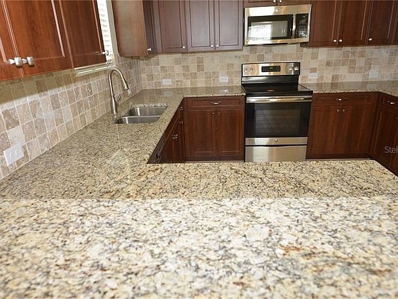 - Interior Features: High Ceiling(s), Master Bedroom Downstairs, Stone Counters
