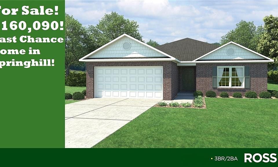 The LAST single story 3 bedroom home built in Springhill! Coming with a double vanity, kitchen can lights, a bartop, vinyl plank flooring, and a covered back porch/patio. This home backs up to a tree line with nobody behind. Makes for great privacy. and would be perfect for a small family or a couple looking for their first home!