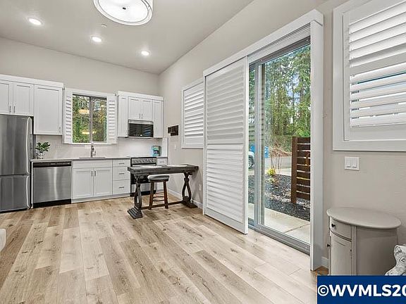 Pristine 1-level solar ready studio offers full kitchen, bathroom, 2 closets, separate exterior storage, parking pad, & EV charger. Boasting LVP floor, high ceilings, quartz counters, & interior shutters, this high efficiency home comes equipped with a mini split & on demand water heater. Located in desirable Pringle Creek Community with 12 acres of shared space landscaped with orchards, 1.3 miles of trails, berry patches, restored glasshouses for year-round gardening, & an acre of community garden space.
