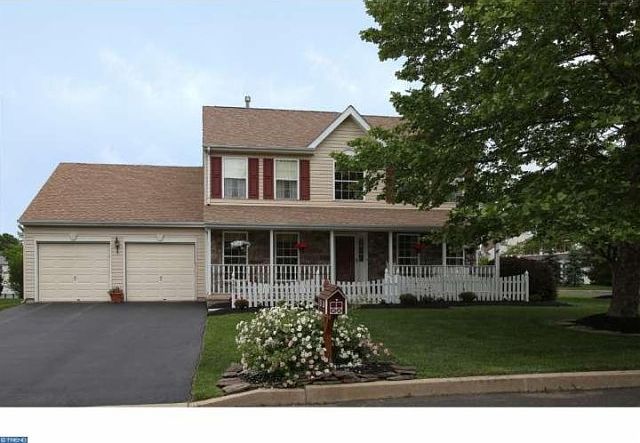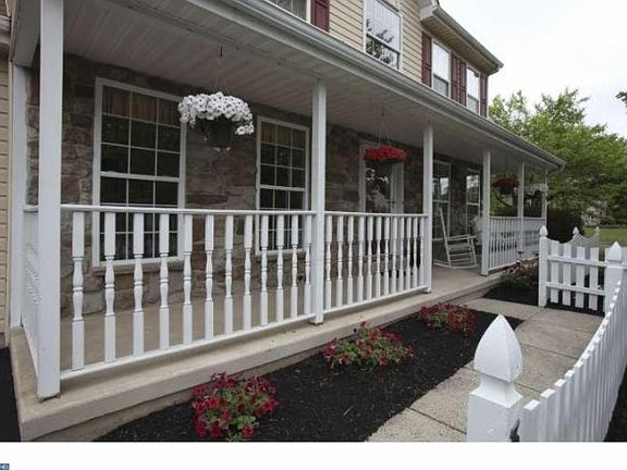 Story Book Curb Appeal to this Charming Home with a White Picket Fence Framing the Rocking Chair Front Porch in the Ever Popular Hearthstone. Meticulous Home in all Aspects. Center Hall Colonial with Foyer Entry, Office to the Left and Living Room to the Right. The Rear of this Spacious Home Includes Formal Dining Room, Eat In Kitchen with H/W Flooring, Bar/Island plus Breakfast Area, Family Room which Opens to the Deck which Spans the Width of the Home, Powder Room and a Spacious Laundry Room. The Partially Finished Basement Includes a Large Craft Room with Built Ins. A Master Bedroom with Walk-in Closet and Sumptuous Bath Plus 3 Additional Bedrooms and Hall Bath .....this Completes the 2nd Floor. Amazing Deck with a Long Distance View of the Adjoining Rear Grounds which will Not Change - this View and Adjoining Grounds are the Association Open Space, a True Plus to Living in and Owning this Home. Close Proximity to Hansel Park, and Minutes to Downtown Doylestown Borough.