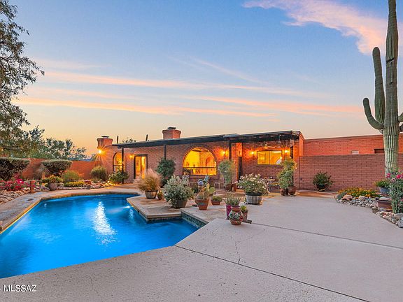 Stunning Mountain & City Views are just the cherry on top in this spectacular Foothills beauty! This classic adobe brick 3bed/2bath home offers spacious living areas with large windows that flood the space with natural light & showcase the surrounding beauty. Outdoors you can enjoy the sparkling pool while taking in the world-renowned Tucson sunsets. The Great Room has a cozy beehive fireplace & is the perfect spot to gaze out into the picturesque views of the backyard. Or head over into the formal dining area to truly enjoy the magnificence of the Catalina Mountains right outside your window. Each bedroom has plenty of space to unwind, large closets & ceiling fans. Both bathrooms have double vanities & upgraded showers & tons of natural lighting. This is the one you've been looking for!