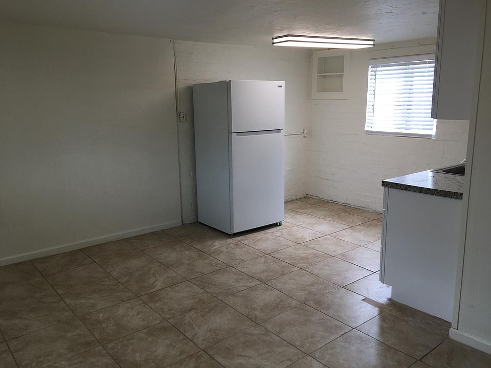 Refurbished studio w/ new appliances, sinks, shower tile, bath flooring, kitchen cabinets, paint and blinds. New A/C split unit. Electricity, water, sewer and trash guaranteed at $115 per month. Small pet OK. Very close to Reid Park, restaurants and shops. Minutes to UofA. Water, electricity and sewer guraranteed at $115 per month for lease duration. One year lease, small dog allowed w/ $250 non-refundable pet deposit.