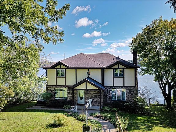 Classic, spacious lakefront living on 94' of frontage with a deep lot all in an upper west side location convenient to interstate access. This well appointed home has three levels of waterfront living in an area of similar homes. The entry level gives you a large living room with a custom fireplace and bookshelves. The living room opens to a beautiful 3 season room overlooking the water. The main floor also includes the formal dining room, eat in kitchen, laundry and half bath. The upper floor has the master bedroom with an en suite master bath, two guest bedrooms and a full bath. The lower floor enjoys two bedrooms, full bath, fireplace with a living room area and an open walkout to the lower level full porch overlooking the waterfront and a potting shed . Much more. Act soon.