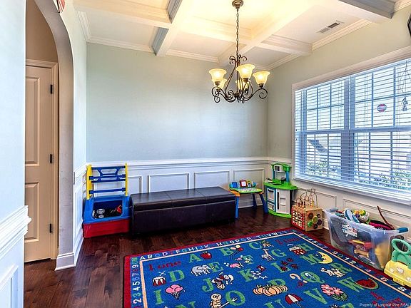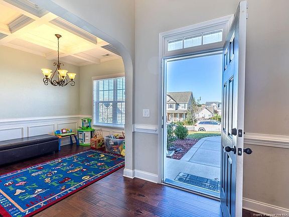 Must see! This beautiful home has a formal dining room with a coffered ceiling. The family room is pre-wired for surround sound & gas log fire place. Spacious designer kitchen with breakfast nook, stainless steel appliances,granite counters & tile backsplash.The first floor master suite has Trey ceiling, granite dual vanity, garden tub & separate shower. 2 Bedrooms, Bonus room & full bath upstairs. Master bedroom is floor level. Privacy fence and no neighbors in the back. This home is in the Fox Meadows neighborhood in beautiful Hope Mills.