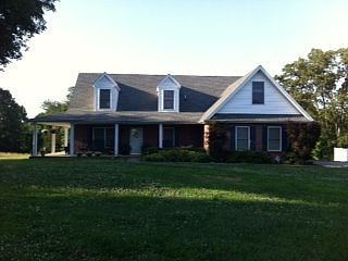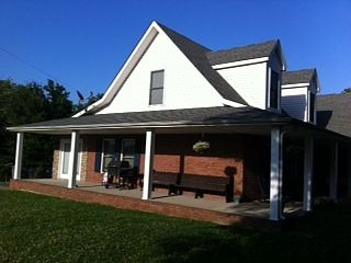 All brick home with wrap around porch. 432 sq ft Concrete patio. Down stairs 2046 sq ft, upstairs 1295 sq ft, garage 342 sq ft, porch 560 sq ft, Total sq ft under roof is 4243. Detached workshop 785 sq ft with storage upstairs. 4 acres plus or minus. Additional property info: http://www.forsalebyowner.com/listing/4-bed-Single-Family-home-for-sale-by-owner-3931-Liverworth-Road-37171/24001979?provider_id=28079