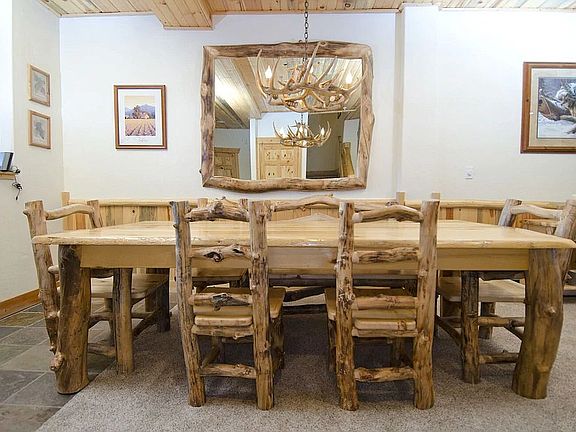 Rare 3 bedroom 2-1/2 bath home in Timberwolf Lodges. Spacious and beautiful mountain-style town home is situated at the base of The Canyons Ski Resort within walking distance of the Cabriolet lift (open air gondola only a 5 to 10 minute walk away) with direct access to both Canyons and Park City Mountain Ski Resorts. Timber Wolf Lodges are conveniently located: at world class Canyons Ski Resort, 3 miles from downtown Park City and Kimball Junction, 2.5 miles from Park City Mountain Resort and 5 miles from Deer Valley Resort. This unit is the largest in the complex and is extremely spacious (1,750 sq. ft.), with large living areas, 9 foot and cathedral ceilings, mountain views from all sides plus large second floor deck. Large living room, dining area, fully-equipped kitchen with new stainless steel appliances, full-size washer/dryer and half bath on first floor. Master suite, 2nd and 3rd bedrooms with sleeping lofts plus 2 baths on second floor. Lob cabin-style aspen log decor with 1 master suite and 2 other nice sized bedrooms upstairs. Each guest room has a queen-sized bed plus full-sized loft bed. Spacious great room with lots of seating on luxury leather couches and chairs and 55" flat screen TV. Beautiful river rock fireplace, dining area with seating for 8, and spacious kitchen with granite counter tops, new stainless appliances and breakfast bar with seating for 5. First floor also has a half bath, comfy leather sleeper sofa (with luxury remote-control air mattress), plus washer and dryer. The townhouse comes with underground parking for one car. There is also a parking area right next to the building for guests and other cars.