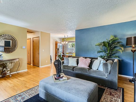 Situated on a quiet cul-de-sac, the property offers direct access to the Rock Creek Country Club golf course with your own golf cart garage in your back yard. The home features 2 bedrooms and 2.5 bathrooms and 1,782 square feet of living space on a 0.21-acre lot. Recent upgrades include a new roof in 2023, fresh exterior paint, new water heater (2024) and a new deck. Welcoming living space with hardwood floors and a cozy fireplace. The galley-style kitchen features a built-in microwave, range, large eat bar, tile backsplash and the stainless steel refrigerator is included in purchase. The formal dining area is off the kitchen and living space, perfect for hosting family meals or gatherings. The family room features a beautiful stone wood burning fireplace. Bonus sunroom that can be used as a workout room, home office, or additional family space. Sliding doors from the sunroom lead out to the deck, making it a convenient extension of your living area. The spacious master bedroom retreat offers sliding doors that open to the back yard with producing apple and plum trees. Central AC. Newer HVAC (2017) and property features RV Parking. Located just minutes from the Streets of Tanasbourne, dining, Nike, Intel and more. The location is also highly convenient for commuters, with the highway 5 minutes away. No HOA fees. Golfers will love the proximity to Rock Creek Country Club, where they can perfect their swing just steps from home.