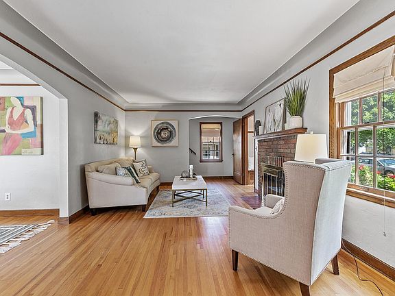 Charming Tudor with timeless stucco exterior and newer roof offers convenience, original character and modern amenities. Showcasing coved ceilings, hardwood floors, traditional archways and a wood-burning fireplace. The main level features a spacious living room with brick surround fireplace, den which makes a great home office and formal dining space to enjoy meals with your friends. Walk out to the large deck and flat backyard, storage shed and enormous 22x29 garage with a workshop area for the hobbyist. The large kitchen has plenty of cabinetry, counterspace and a gas range for the chef in your family. You will appreciate the convenience of 3 spacious bedrooms on the upper level, brand new carpet and the updated full bathroom. The lower level rec room is great for your home gym and has a convenient 1/2 bath. AC was replaced in August of 2022! Minutes from award winning restaurants in downtown Robbinsdale!