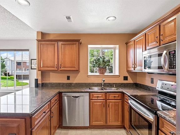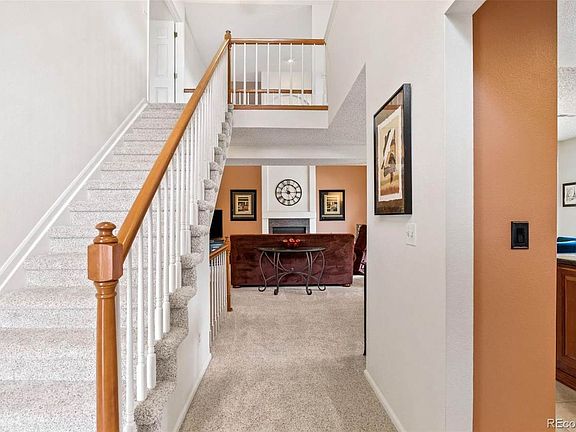 Tucked away in a cul-de-sac, steps away from Meadow Hills Golf Course and within walking distance to Cherry Creek State Park, this updated & well-maintained townhouse-style condo welcomes you. Its hard to know what to admire first when you arrive at this beauty. The welcoming front porch beckons you to sit & enjoy this quiet and peaceful community. As you enter you will find secluded from the main area of the home a bedroom, which also features a secondary bathroom that has recently been luxuriously updated and features a shower with a strikingly modern design. The well-appointed kitchen shines with slab granite, undermount sink, recessed lighting, soft close cherry cabinetry, and stainless steel appliances! The vaulted living room with two story windows and showpiece floor to ceiling fireplace is the heartbeat of the home. No luxury detail was missed in the open concept living area to the kitchen and dining area design. Light streams in through the new energy-efficient windows and makes the home gleam! Step out on the deck and imagine peaceful morning coffees or waving at the neighbors as you enjoy a lovely Colorado evening. Back inside, the pristine condition of the carpet and tile throughout is evident. Follow it to your upstairs oasis-the primary bedroom with vaulted ceiling, large walk-in closet and en-suite spa-like bathroom is sure to be a grateful retreat at the end of the day. The loft is ready for your imagination-but already has useful and versatile built-in floor to ceiling storage closets that can hold just about anything! New HVAC in 2019, new windows with transferable warranty in 2020, and convenient laundry and utility room are also notable features. Rest knowing your cars are secure in the underground garage with secure direct access into your home. This home offers two garage spaces with new paint, baseboards, built in shelving and storage cabinets, along with two separate storage rooms. As you will see, no luxury upgrade was missed in this home.