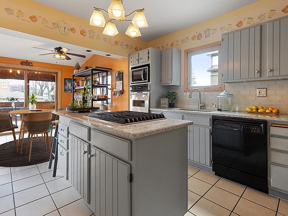 Welcome to this spacious 4-bedroom, 2.5-bathroom home with a finished basement, located steps from the Metra train station in beautiful Brookfield. Offering over 2,000 square feet of finished living space, this well-maintained home presents a thoughtfully designed layout. Step into the bright and open front room that seamlessly combines the foyer, dining area, and living room, complete with a cozy wood-burning fireplace. The eat-in kitchen is a standout, featuring quartz countertops, a center island, and a pantry closet. Adjacent to the kitchen, the bright and inviting breakfast room is the perfect spot to enjoy a meal, with convenient access to the enclosed rear porch. The main floor also includes a bedroom and a full bathroom, offering flexibility for guests or a home office. Upstairs, you'll find three generously sized bedrooms, including the primary bedroom, offering plenty of space and comfort. The finished basement adds even more versatility, with a comfortable family room lined with built-in shelving. There's also ample space for storage. The exterior is just as impressive, offering a fully fenced backyard, an enclosed rear porch for nearly year-round enjoyment, and an above-ground pool. Recent updates include big-ticket items such as a new roof (2018), air conditioner (2018), furnace (2016), water heater (2022), and flood control system (2016). Additional upgrades include refinished hardwood floors (2023), an updated kitchen (2021) with newer appliances (cooktop, refrigerator, oven, washer and dryer, 2021-2025), and multiple bathroom renovations completed between 2015 and 2018. Other improvements include fresh interior paint (2024), new ceiling fans (2023), electrical updates (2023), a new porch roof (2023), exterior staining and caulking (2023), the addition of gutter guards, and more! Blending charm, functionality, and thoughtful improvements throughout, this Brookfield home is move-in ready. Schedule your showing today!