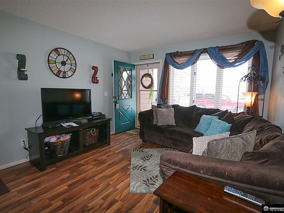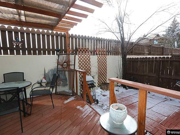 Darling townhome just perfect for one or two of you! Room for expansion or storage in unfinished basement! Charming deck with fabric slatted cover and artfully painted walls! Walk in closet in roomy master bedroom. Upgraded appliances. Custom paint. Laminate flooring throughout main floor. Newer carpet up. New roof. Laundry on upper floor by master bedroom. Owner paying fixed rate $119 a month Rocky Mt Power based on last years usage.