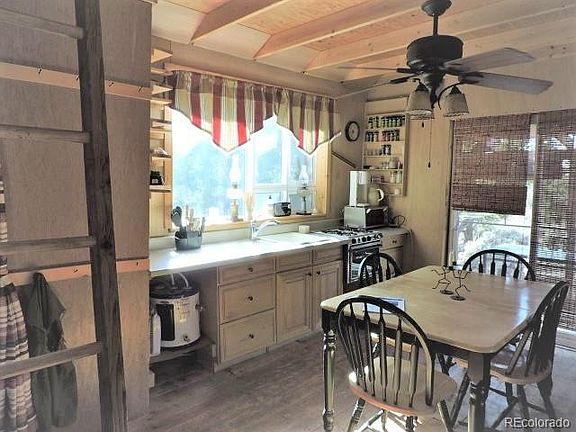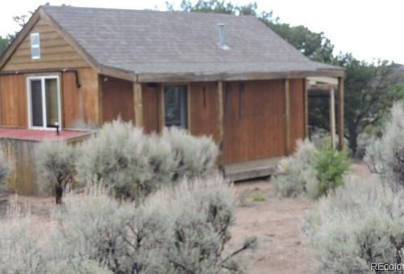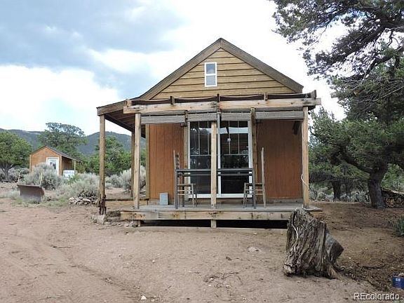 This quaint cabin(288 sq ft) in the woods! Cabin is nestled in the Pinon Pine's of the Sangre De Cristo mountain range. Just minutes from Mountain Home Reservoir,and from the historic town of Fort Garland at a fresh 8500 feet elevation. One can enjoy fishing, hiking climbing, skiing and so much more. There is power to the home along with a 275 gallon cistern and a 275 gallon septic tank.The property has a great survey plat and offers 5 acres. The furnished(all on site is all included) cabin rest on 4x8 cinder block foundation, roof is asphalt shingles and is finished inside and out nicely, has small shower-toilet combo. Walls are 2x6 , R19 with T 1-11 siding. Open floor plan with cozy loft. Kitchen includes re fridge and microwave, propane stove-oven. Heat source is wood stove. This is a cozy fit. But a great place to build your dreams! The property is nicely speckled with a thicket of tree's that offer privacy and seclusion. Has a storage shed (8x12)onsite. Cabin is as is, cash sale.No rentals, no owner finance. A unique find for sure. No permits available or blue prints, Very basic , just an all around great retreat in the mountains!
