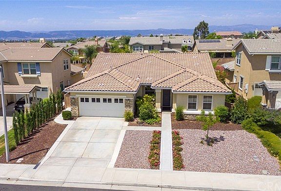 Attention to detail and amazing upgrades welcome you into this beautiful Temecula residence, in the sought after community of Valdemosa. With a design and layout built for both form and function, the home presents an incredible opportunity for effortless everyday living. Shree is an amazing masterpiece, sprawling over 2,400 square feet of exquisite living space, and offering a spacious floor plan convenient for all family types. Shee includes three vast bedrooms and an additional spacious fourth bedroom option with an exterior hall closet. The high ceilings and open layout allow for continuous entertaining, festivities, and celebration, as the host is able to prep and cater from the voluminous kitchen, that opens up to the family and informal dining area. The kitchen is equipped with some of the finest appliances, and is beautifully accented by the kitchen island with sink and high bar. The master bedroom offers a direct access to the back yard sitting porch, and is complimented with a spa like master bath that includes separate sink vanities and a separate shower and tub combo. Shree sits on an almost 10,000 square foot lot, and is ready for the new owner to let their imagination flow. Additional amenities include home water softener, painted garage flooring, stone flooring throughout the residence, recess lighting, storage pantry, ceiling fans, and more. Welcome Home to Shree, a beautiful residential gem in the heart of Temecula.