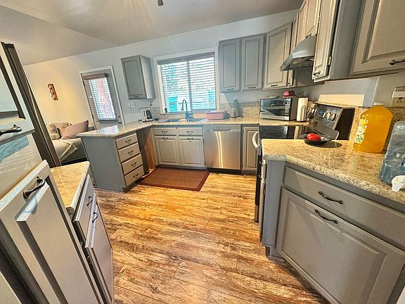 Charming 2-bedroom, 2-bath stick-built home with 2-car garage on 1.91 acres! Enjoy the inviting covered front porch and spacious living and dining areas featuring vaulted ceilings, abundant windows, and French doors that fill the home with natural light. Property is fully fenced and beautifully treed, offering both privacy and serenity. Stay cozy year-round with electric heat and a pellet stove. Peaceful, private setting—perfect for your retreat.
