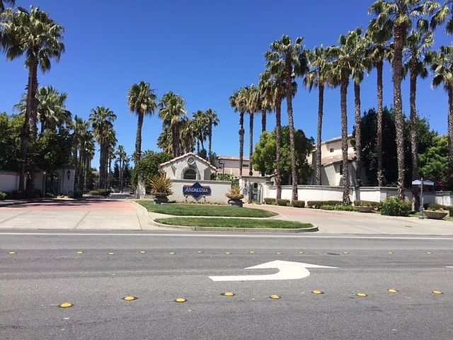 Beautiful two story townhome in palm tree lined gated community. One bedroom and full bath down. Two bedrooms with en suite bathrooms up. Formal living room with fireplace and balcony. Kitchen with gas stove, microwave oven, dishwasher, fridge, walk in pantry. New carpet and interior paint. Washer dryer in laundry room. Attached one car garage and additional parking space. Brand new carpet and interior paint. Lots of light. Easy access to 680 and 880. Walk to BART, shopping, park, tennis courts, restaurants, golf. Rent includes water, garbage. Community pool and clubhouse. Owner pays water, garbage, hot water.