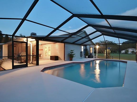 Sit on your 8'x56' covered front porch and watch the sun come up. Sit on your 12'x37' screened lanai next to your pool and watch the sun go down. This 3 bedroom 2 bath custom built pool home has a super big great room including a wood burning fireplace. The kitchen with cabinets galore opens to the great room and ample dining area. There is an inside utility room, wood floors throughout and a security system. The bedrooms are split and the Master bedroom includes a private Master bath. Bedroom number two has a pocket door that leads to the 2nd bathroom which also has a door into the hallway. The roof has been re-shingled and the A/C unit has been serviced regularly. The property is a total of 4.39 Acres and includes a really nice pole barn with metal roof. This property sits off the beaten path and would be great for anyone who needs some space for animals or recreational/work vehicles or just wants to plant a garden.