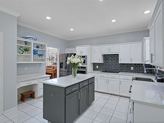 Welcome to this amazing home in the desirable Willow Creek Addition. Step inside to a stunning, 18-foot cathedral ceiling with a grand, modern staircase. The home's centerpiece is the fully renovated kitchen that's ready for culinary adventures! It features sleek, marble countertops, glass tile back splash, an island, modern appliances a huge, stainless farm sink. Whether you're hosting dinner parties or cooking family meals, this kitchen is ready to impress. Open to the kitchen and dining room, you can relax in the family room by the cozy fireplace, complete with a view of the backyard and pool. The spacious, primary bedroom is the perfect retreat, with plenty of room for a sitting area. It also has a vaulted ceiling, new carpet, and an ensuite bathroom with dual vanities and a jetted tub. Modern living is a breeze with numerous smart features throughout, including a smart, high-tech sprinkler system, GE smart lighting in the family room, kitchen and primary, and a security setup with a Ring doorbell and three cameras. Outside, discover your personal paradise with lush, professional landscaping, and a recently resurfaced pool and heated hot tub; ideal for unwinding or entertaining guests. The location couldn't be better—just 10 minutes from DFW Airport, nestled comfortably between Dallas and Fort Worth, with myriad shopping and dining options nearby. A new HEB supermarket is on the horizon, adding more convenience to your life! Don’t miss the chance to experience this beautiful blend of comfort, style, and smart functionality. This home is more than just a place to live; it's a lifestyle upgrade waiting to happen. Schedule a visit—you’ll want to see this in person!!