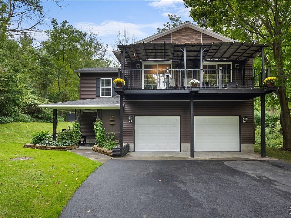 Discover tranquility in this charming Raised Ranch located in Canastota, set on over an acre of serene countryside. This 3-bedroom, 2-full bath home offers ample space for all, including a potential in-law suite on the lower level, complete with the smaller bedroom perfect for a home office or guest space. The main level boasts gorgeous vaulted ceilings and hardwood floors, creating an open and inviting living area. Step outside to your upper deck and soak in the peaceful grounds or relax in the fenced in backyard, perfect for outdoor relaxation. Two sheds provide extra storage, with one already equipped with water and electricity—perfect for hobbies or a workshop. Embrace the calming sounds of nature while enjoying this beautifully landscaped property. Don't miss your chance to own this unique home—delayed showings and negotiations begin Friday 9/13/24 @ 10:00 a.m.