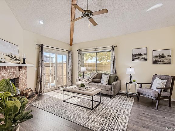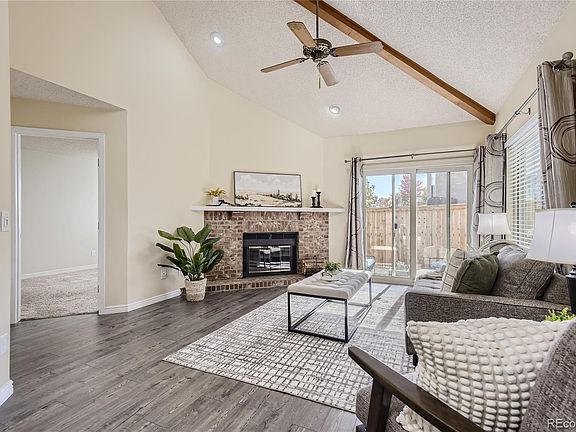 Comfortable living sure comes easy in this exceptionally updated two-story end-unit townhome in the highly desirable Hanover Place community! Upon entry, discover an impressive interior that welcomes you with an open floorplan, neutral tones, and natural light sweeping through the living room, which has vaulted ceilings and is anchored by the gorgeous brick wood-burning fireplace. With fresh laminate wood plank floors and thoughtful upgrades, this home exudes charm across its beautifully designed living spaces. The fully renovated kitchen is ideal for entertaining, featuring a convenient breakfast bar with a stylish shiplap accent, stainless steel appliances, solid surface countertops, a chic subway tile backsplash, recessed lighting, and refinished soft-close cabinets & drawers- it seamlessly connects to the dining area for easy flow. Off the living room, sliding glass doors open to the enclosed patio, creating the perfect spot to start your day with a cup of coffee or enjoy weekend cookouts with friends and family. The patio also connects to the neighboring courtyard, offering additional play space for pets. Rounding out the main level is a sizable bedroom with a large walk-in closet and a remodeled full bath that sports wood-look tile flooring. A versatile loft awaits up the stairs, along with an expansive primary suite with an updated bathroom featuring a marble dual-sink vanity and a custom-tiled shower. The finished basement offers additional space to relax with a family room, guest bedroom, updated ¾ bath, and extra area for storage. Other notables include a newer roof, new skylights, a new hot water heater, new paint throughout the house, all new interior doors, new double pane windows and glass slider, new patio concrete and fence, and new faux wood blinds. Minutes from The Streets at SouthGlenn for abundant shopping & dining and easy access to the popular Highline Canal Trail, multiple parks, DTC, and major highways (I-25, C-470, and I-225) for commuting.