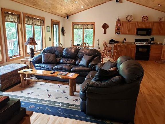 Fabulous quality-build home with 4 bed/3 full baths. Master bedroom has a full bath on the main floor and another bedroom with a separate full bathroom. The home is completely finished from top to bottom. This walk-out has it all including hardwood floors on the main level, solid wood doors, and beautiful windows with window treatments throughout. Open concept and perfect for a large family and friends to enjoy the Northwoods with 47 acre Rade Lake. Located approximately 6 miles North of Eagle River, westerly facing with beautiful sunsets and good pan fishing. This home is a must see to appreciate the quality construction and well planned out property. Some of the lawn has been recently sodded and includes some professional landscaping. 9994