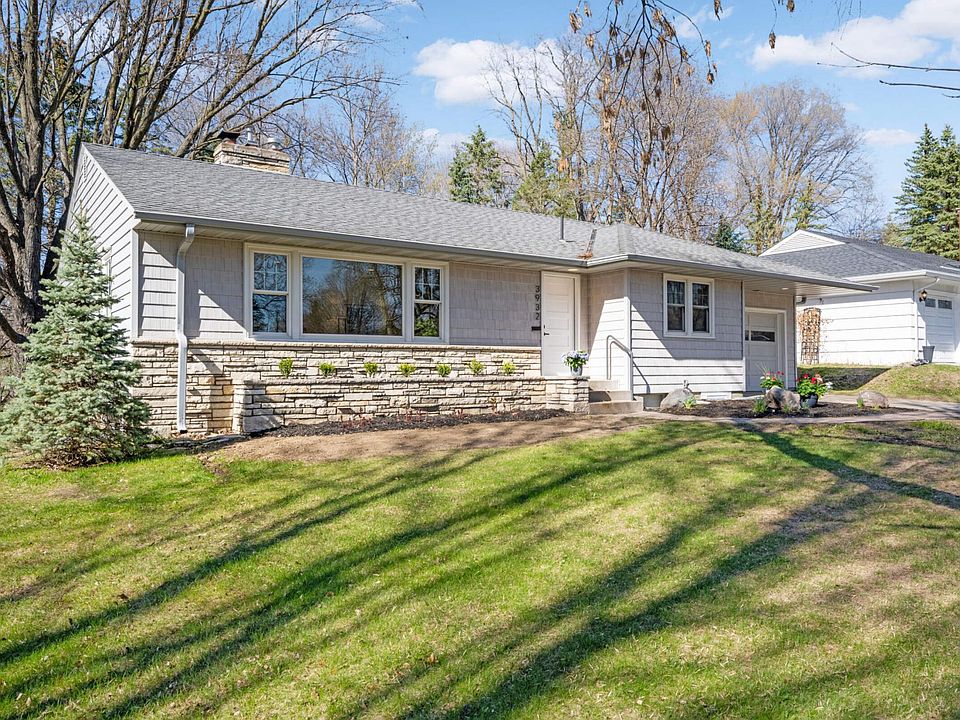 Coveted East Edina rambler with creek views is perched on a private, wooded lot and just steps to Pamela Park. Conveniently located, it is sandwiched between all the amenities that both Southdale and 50th and France has to offer. Interior features a light and bright main level with a comfortable floor plan that easily flows between the indoor and outdoor spaces. Recently renovated using only the highest quality materials and smart design choices the home offers a sophisticated aesthetic. It boasts: main level primary suite with private bath, and large walk-in closet; gourmet kitchen with stainless appliances and quartz countertops; refinished oak hardwoods and new carpet throughout; 3 all new baths; fully finished lower level; 2 fireplaces; office space; 3 season porch, spacious deck and so much more.