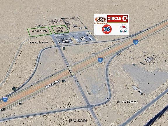 2+- acre prime corner commercial zoned lot on interstate 15 frontage. Across from the 76, A&W, Circle K, and Mobile Gas. Good for a Gas/EV Charging Station, Fast Food, Truck Stop, Etc.