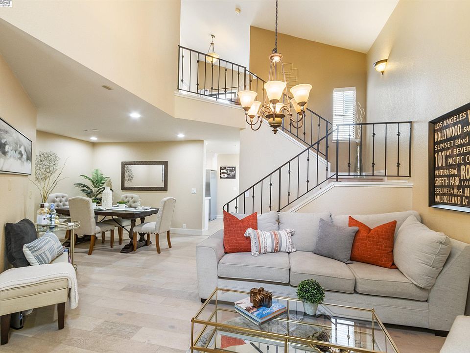 Welcome to this Beautiful townhouse style condo nestled in the highly desirable Andalusia resort-style gated community in central Fremont. The home boasts a flowing two-story open floor plan with lots of natural light, 2 bedrooms + Loft, 3 full baths, 3 private balconies and nice hill views. It also offers a beautiful updated kitchen w/quartz countertop, glass tile backsplash, newer stainless steel appliances, gas stove, built in wine cooler, recess lights & sunny breakfast nook. The Living room w/adjoining dining room offers a dramatic vaulted ceiling, chandelier & beautiful fireplace. The Elegant & inviting primary suite offers a beautiful fireplace, vaulted ceiling, walk-in closet, jetted tub & private balcony. Addt'l features include: 1 bedroom/full bath on main level, newer modern engineered hardwood flooring throughout, closet organizers, attached garage, Ring video doorbell. HOA includes: Security gate, pool, spa, club house, trash, water & maintenance of exterior common areas & roof. Located within walking distance to BART, Lake Elizabeth, Sports Complex & Library. Easy access to freeway, Tesla, Silicon Valley & the Peninsula. Living in this wonderful home will make your everyday living an extraordinary experience. Don't miss the opportunity to own this home!
