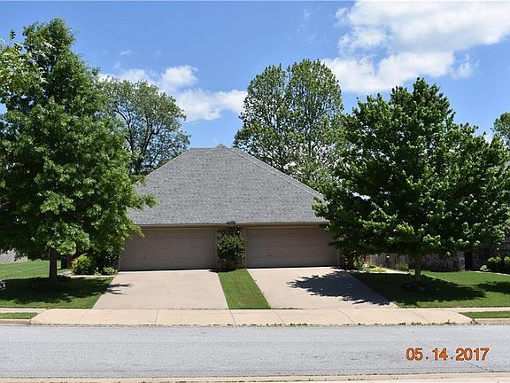 Must see, one story beautiful duplex upscale area between I-49 & 71b. Very accessible to all NWA. Beautiful stone veneer front, 9'ceilings, beautiful wood floors & tile in living areas, tray ceiling, many recessed lights, marble tile kitchen counters, oversized 20.5' by 20.5' garage, 3 extra closets, lots of crown molding & wood casing. Side "A" includes refrig, washer & dryer. Great for owner in side A w/back door to private deck & fenced yard. Near Razorback trail, Springdale Lake, JB Hunt park, dirt bike trail.