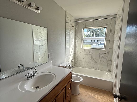 The bathroom has been completely remodeled with a modern tile finish, adding a fresh and elegant touch. Throughout the home, you'll find refinished hardwood floors that bring warmth and character to every room. Enjoy the simplicity of a clean, functional layout designed for comfortable living.