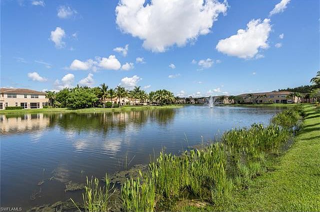 Wow - It doesn't get much better than this!! This stunning like new lakefront 3B+Loft/2.5Ba corner end unit townhome in San Simeon was built in 2010 by DR Horton & was used just a few weeks a year!! Picture perfect home shows better than any model! This gorgeous & private townhome - situated on one of the largest oversized pie shape lots is loaded with upgrades - custom plantation shutters thruout, upgraded lighting & quiet fans, upgraded stainless kitchen appliances, upgraded door trim, 14 SEER AC. Wonderful pavered patio & pavered lanai has a wonderful view of the lake & fountain yet is very private w/canvas curtains- keeps the weather out & gives you a cozy & private outdoor living space! Spacious great room, eat in kitchen with 42" cherry cabinetry, lg bedrooms w/lots of closet space, very convenient upstairs laundry rm & a single car garage w/oversized drive for parking 2 vehicles. Meticulously decorated down to every detail w Pottery Barn furnishings and is available fully turnkey. Perfect for a vacation home or year round living minutes to SWFL Intl airport, I-75, FGCU, close to area shopping, dining & a short drive to area beaches! Gated w/Community Pool & Fitness Center!