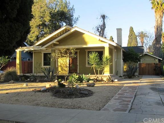 Charming "Wood Streets" Bungalow features a Large Front Covered Porch, New Front Yard Drought Resistant Landscaping, Remodeled Kitchen with Granite Countertops and tile flooring, Stainless Steel Appliances. Indoor Laundry off of the Kitchen with storage, New Windows and Hard Wood Floors throughout, New Carpet in Bedrooms. Master Bedroom includes a Walk In Closet and French doors that open to the Backyard Patio Sitting Area. Large flat backyard has automatic sprinklers and there are fruit trees on the property that include Apricot, Tangelo and Grapefruit.