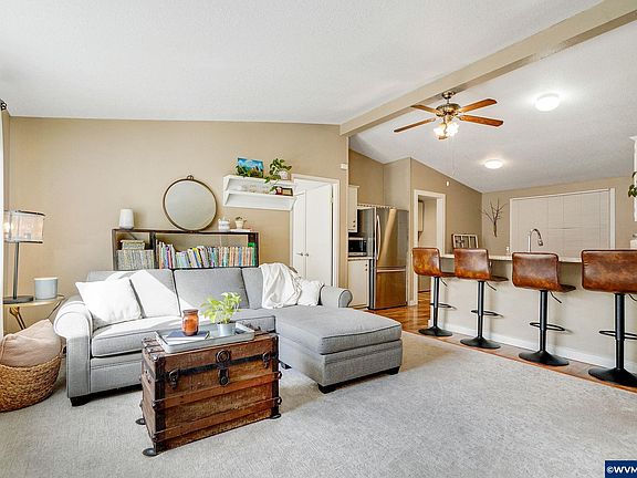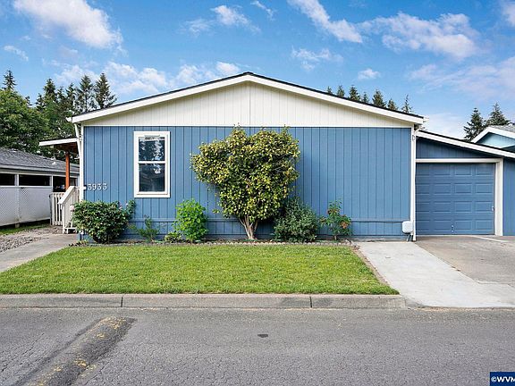 This cozy 3 bed 2 full bath home is nestled in a friendly all-ages park. It is a must see with vaulted ceilings, fully fenced backyard, right off Highway 99 or a quick 10 min drive to I5. Exterior paint, roof and heat pump done in 2020, new flooring, carpet and countertops in 2022, current space rent is $656. This home is a perfect blend of comfort and convenience.