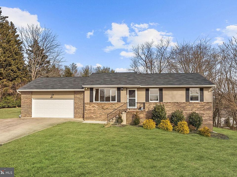 Stunning updated Rancher highlighted with gleaming hardwood floors, light-filled interiors, and neutral color palette! Spacious living room with a lofty bay window and recessed lighting; Dining room adorned with crown molding, chair railing, and easy access to the deck; Eat-in kitchen embellished with ample cabinetry, sleek stainless steel appliances, and Granite countertops; Primary bedroom with en-suite bath, two additional bedrooms, and full bath conclude the main level sleeping quarters; Large family room, full bath, storage, laundry room, and walkout access to the backyard complete the lower level; The exterior features landscaped grounds, covered front porch, expansive private lot, deck, patio, floodlights, and backs to trees. Recent updates: Kitchen, paint, carpet, stainless steel appliances, granite countertops, roof, gutters, and more! A MUST SEE!