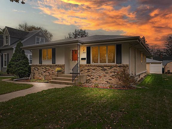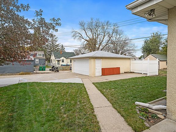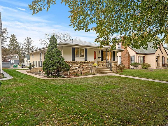 Welcome Home! One story rambler home, built in 1964 with 3 bedrooms and 1 full bath on the main level! Updated kitchen with white appliances (gas range), vinyl floors, corian countertops & Oak cabinets; new a/c (2023); newer boiler furnace (2019); beautiful Oak hardwood floors in all 3 bedrooms; large separate dining room and living room, great for entertaining! Lower level partially finished with huge family room. Lots of storage in the basement workshop area and in the laundry room utility area (super clean and functional basement). Detached 2 car garage, plus 10'x20' concrete parking pad adjacent to garage, alley access. Great outdoor space with 19'x8' side concrete patio, nicely landscaped, level useable yard, great curb appeal! Close to Hwy 100, Bottineau, shopping, medical, conveniences! No pets have lived here and is a non-smoking home. Move-in ready and quick close possible.