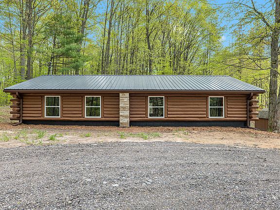 Wait until you see this fully remodeled log cabin! This 3 bedroom 1 bath home has just been completely remodeled and is ready for the new owner. New crushed asphalt driveways with ample trailer parking, New steel roof, chimney, stained and sealed logs, new porch railing, all new lighting and outlets. The inside has all new floors LVP and carpet, new trim, new kitchen featuring quartz counters and stainless appliances. All new baseboard heaters, new electric high end fireplace with a slate surround. The bathroom is all new. New well at 125 feet deep! Lets not forget about the 28x32 pole barn that is clean and ready for the new owner to finish inside to their liking. There is a 5 foot tall crawl space under the bathroom for mechanicals. Located close to the Manistee National Forest trails!
