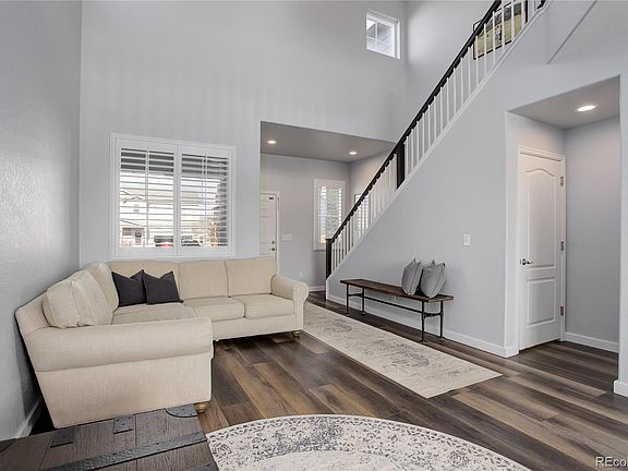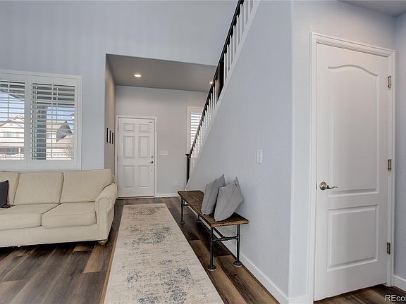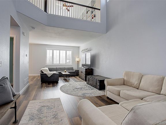 Welcome to this stunning two-story home located in the highly sought-after East Quincy Highlands subdivision in the award-winning Cherry Creek School district. With an open floor plan, the living room boasts soaring ceilings and expansive windows with gorgeous plantation shutters offering tons of natural light. Premium vinyl plank flooring throughout the main level and upstairs adds to the beauty. The beautiful kitchen is perfect for cooking, with granite countertops, custom backsplash, and stainless steel appliances. The main level also features a half bath, laundry/mud room, and access to the oversized two-car garage. Upstairs, you'll find the primary suite with a walk-in closet, ensuite bath, dual sink vanity, and large soaking tub/shower. Two additional bedrooms, another full bath, and an open loft/flex space with built in bookshelves complete the second floor. You'll also appreciate the finished basement, perfect for a 4th bedroom as well as secondary living, workout, or office space. Outside, relax on your back patio facing open space with neighborhood trails. You're just a quick 7-minute drive from Southlands Mall with over 165 stores, a movie theater, and summer events. Water heater new in October 2022. Sump pump new in January 2023. This meticulously maintained home is ready for move in!