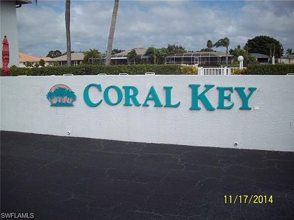 Fantastic waterfront condo on a wide canal! This condo is in great shape with many upgrades. Upon entry to this first floor unit, the foyer leads you to the main living areas. The dining room is located close to the kitchen. Large size newer refrigerator, tons of storage and a area with a small breakfast table. The dining room is a nice size and will fit a table for 6 easily. The guest bedroom is a nice size and is close to a bathroom. This condo has a private washer and dryer as well. The master suite is large with views of the waterfront. The bathroom has walk in closets, a shower and dual sinks. The living room has sweeping views of the waterfront! The canal is 200 feet wide and the community features a pool and dock area. This ground floor unit also has a screened in lanai with hurricane shutters throughout, large enough to have patio furniture to relax and enjoy the boaters going by. The complex also has mature tropical landscaping to make everyday feel like vacation. Additional benefits include storage & parking. All furnishings as seen are negotiable.