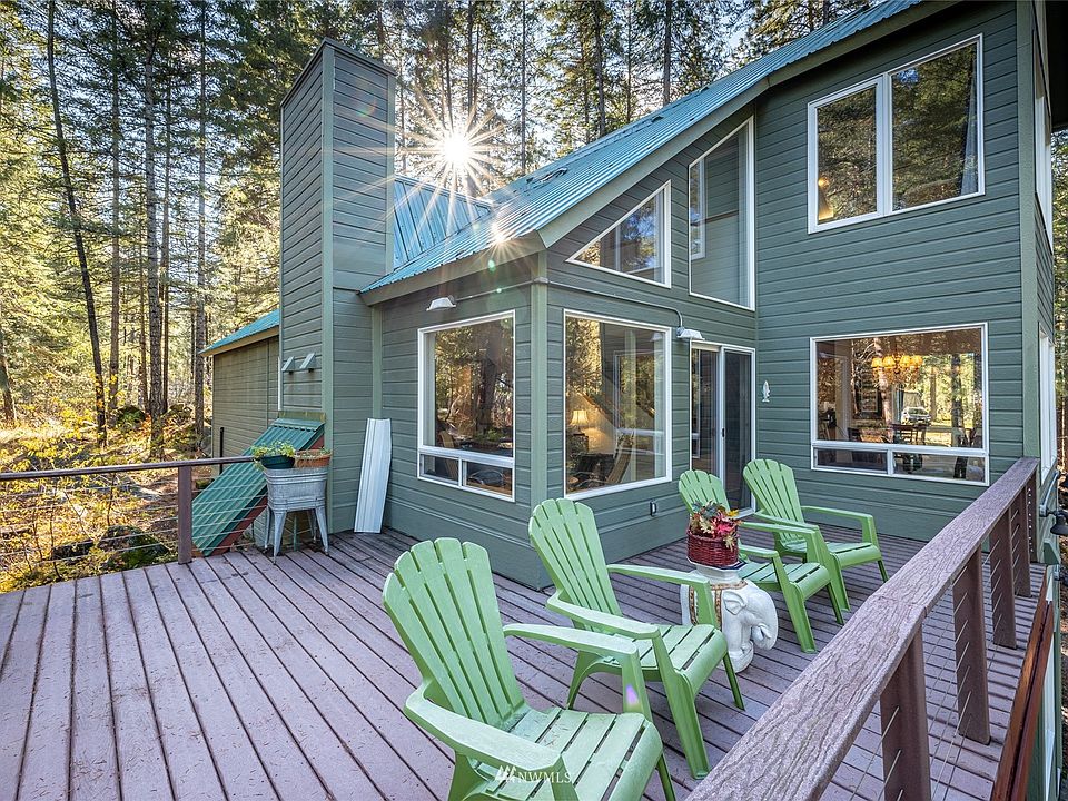 Don't miss this Leavenworth-area mountain waterfront home on 1.4 acres! Located on the Peshastin Creek rapids, this architecturally-designed, light-filled luxury home celebrates the natural world, with oversized view windows and cathedral ceilings throughout its 3,000+sf floorplan. With 97-feet of private creek frontage, this home offers plenty of serenity, PLUS great neighbors! All three homes in this exclusive community hug the shoreline, for fantastic views and the sounds of the creek, but are set 400- feet back from convenient all-weather Highway 97, (first to be plowed and always de-iced in winter) -- just a short drive to Leavenworth, local recreation, and easy access to Seattle and Airports.