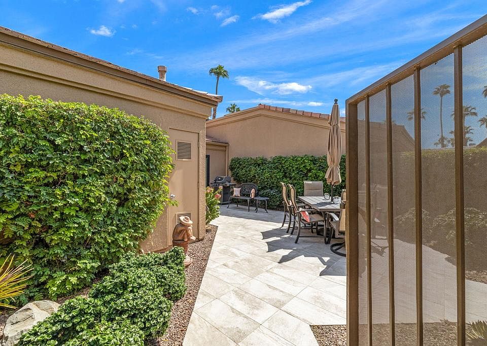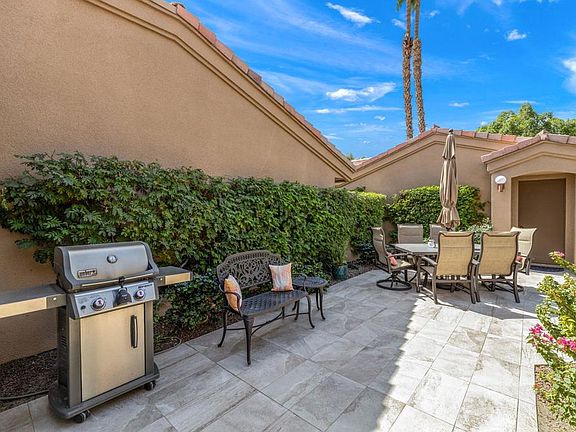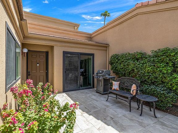 Indulge in the pinnacle of elevated living with this stunning residence, boasting designer touches at every turn. The carefully curated color palette lends an air of sophistication to every room, while sleek porcelain tile flooring adds a touch of luxury underfoot. Elevate your culinary experiences with commercial-grade appliances that promise both form and function in the heart of the home. Nestled in the picturesque Palm Valley Country Club, this tastefully updated residence exudes model-home charm and is ready for you to move right in. Boasting a fantastic floor plan, this home offers two enchanting outdoor spaces: a private courtyard and a spacious enclosed rear patio complete with a chic retractable awning. Unlock exceptional rental potential with short-term rentals permitted. Enjoy access to Palm Valley's 46 inviting pools and spas, tennis and pickleball courts, and two championship golf courses. Plus, indulge in the convenience of being just minutes away from the exquisite dining and shopping of El Paseo. Seize this opportunity to live the dream!