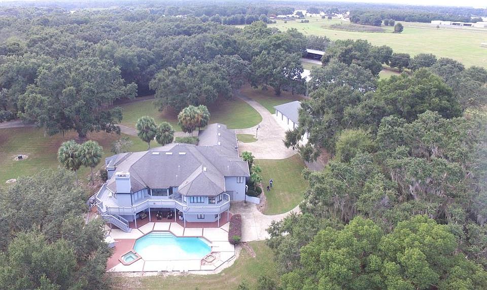 Umatilla Dream! on 26 acres MOL, As you enter the Iron gates you will be taken back by the 800Ft+ concrete driveway lined with trees. The drive takes you to the main home with over 6,000sqft (new roof in 2022) and an inground pool. The main floor features a gourmet kitchen, 5 bedrooms & office, 3.5 bath and amazing views from every room. Now take the stairs down to the entertainers paradise. With a living room, kitchen, man cave, extra bedroom and french doors leading to the pool with views of the large pond. Around the property you will find, A 6 car garage, a metal building, hay/equipment building, a 5 bay building & a 4 bay building w bathroom. Both the buildings are over-sized and have plenty to offer. You also have a separate huge metal building. All buildings are heated & cooled except one workshop. Come See!