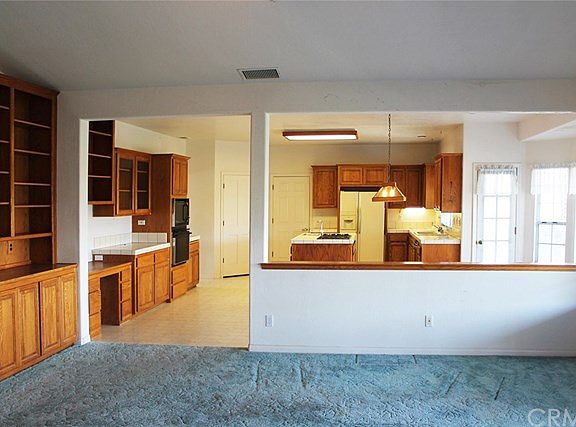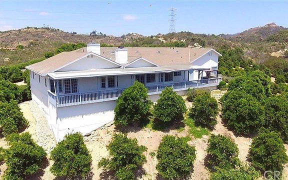 This fine property was lovingly maintained by a wonderful couple however a new owner will likely consider adding a little TLC while updating the interior and furnishings to their own taste. You will see from the photos this home has an open floor plan that will provide a lot of freedom for your imagination. The 40 foot long combined family room and kitchen fits the classic definition of "Country Kitchen"...a large open space to prepare food and share meals while enjoying your family. Double ovens, an island with vented range and prep sink add to the experience. A generous front porch with double doors welcomes you to the living room with 14' vaulted ceilings that extend into the dining room with double French doors and a solid hardwood floor. Double French doors, with double screened doors open the Family room and Master bedroom to the rear deck/balcony with awesome De Luz Heights views. The Master bedroom has vaulted ceilings, a fireplace, 2 walk in closets and a spa tub in the bathroom that is nestled into a large bay window with a view. The remaining 2 bedrooms are spacious as is the private office tucked away in its own corner, naturally with a view. The house is surrounded by acres of a professionally maintained citrus grove. The 3 car garage has one bay with a 10' door and is approximately 950 sf.