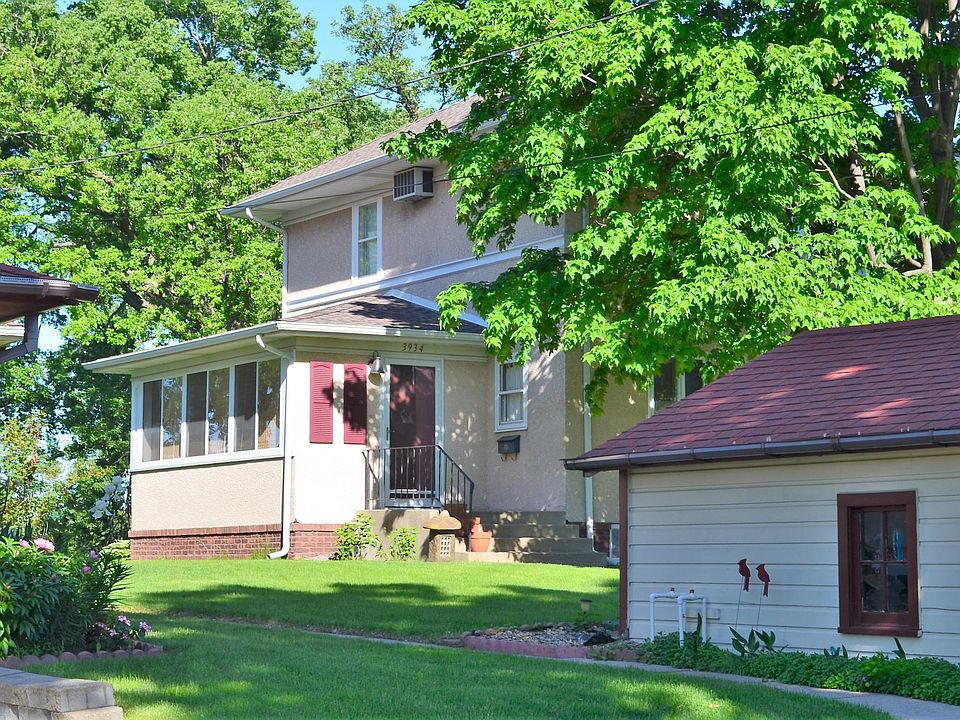 LAKE SHORE LIVING in the CITY! AVAILABLE OCTOBER 1st Open House Sun, Sept 19th, Noon - 2pm This 1920's two-story home is situated at the end of a private lane on a large double lot with panoramic views of Crystal Lake, mature trees and perennial gardens. You'll enter through a sunny three season porch into the foyer. The main level has an open floorplan, fresh neutral-tone paint, and gets lots of natural light. The galley kitchen faces west and is shaded by a large maple tree in the front yard. There are two kitchen windows, a new dishwasher, newer fridge, electric range, and counter microwave. The formal dining room features hardwood floors, built-in buffet and sliding doors to the patio. The living room features an unobstructed view overlooking the lake, clerestory windows, refinished hardwood floors, and a functional wood burning fireplace (with a generous supply of cord wood). The upper level features hardwood floors, a full bath with ceramic tile, and an oval tub. There are 3-bedrooms - two with stunning lake views. The 2nd bedroom would make an exceptional home office. The master bedroom has double closets and a half bath. The main and upper level both have a window or wall AC. The basement includes new washer and dryer, plenty of room for storage, a newer boiler (radiant heat), and updated 200-amp electrical service. Includes detached 2+ car garage and a garden plot across the access road. Walk to downtown Robbinsdale shops, grocery and entertainment; adjacent to walking/biking trail and park; easy access to Hwy 100; half mile to North Memorial hospital and 2-miles to downtown Minneapolis. Robbinsdale school district 281. PLEASE NOTE THE HOME CAN NOT BE SHOWN BEFORE SEPTEMBER 19TH, and owner will be unable to review applications until on or after this date. Owner requests an initial lease term of 6 to 9 months. Longer lease term negotiable thereafter. Call for showing appointment. Owner pays for lawn care; renter pays all utilities; no smoking, 1-pet (restrictions apply), background check required