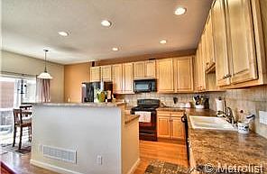 Walk to RTD, The Academy grades 1-12, shops & night time entertainment. Lots of trails. Granite, new flooring main floor, lots of storage, small private patio/yard with hot tub. Larger unit, open & sunny.