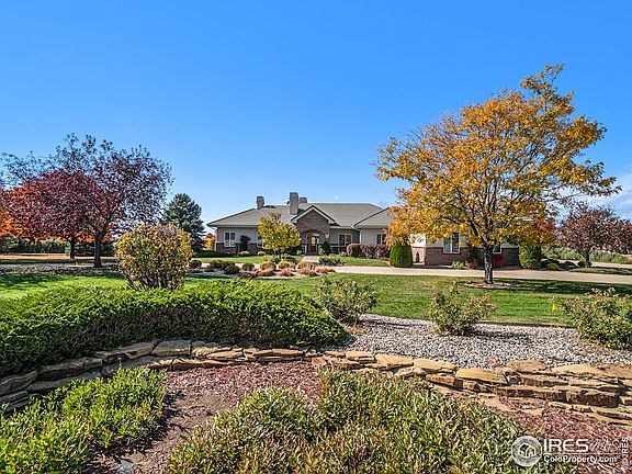 Huge Price Improvement $100,000! Meticulously maintained one owner home in gated community of Belmont Farms. This private oasis sits on 4.07 acres and boasts beautiful views of the Rocky Mountains from every angle of the home. This custom ranch style home features a main floor primary suite with a sitting area, 5-piece luxury bathroom, jetted tub, fireplace, and a patio with private access. The main level has a wide open floor plan, perfect for entertaining, with beautiful custom paint finishes, pine trim and cabinetry. The large gourmet kitchen has a gas cook-top, brand new Kitchen Aid double ovens and double warming drawers, granite countertops, oversized refrigerator and under cabinet lighting. The walk-out basement with patio features 3 bedrooms, one of which is an en-suite, 2 full baths, a 3/4 bath, rec room with a wet bar, and a sun room that is pre-wired for a hot tub. This space can also be used as an exercise room. This 6046 sq.ft house has 2 furnaces, 2 water heaters, whole house humidifier, & built-in vacuum system. Many mature trees and gorgeous landscaping with lawn sprinkler and drip system. A heated oversized 4 car garage for plenty of parking/storage. A built-in gas BBQ grill on your patio with a partial glass enclosure. This dream home is centrally located minutes from Windsor, Timnath and easily accessible to Greeley and Fort Collins. This is the best in Colorado living!