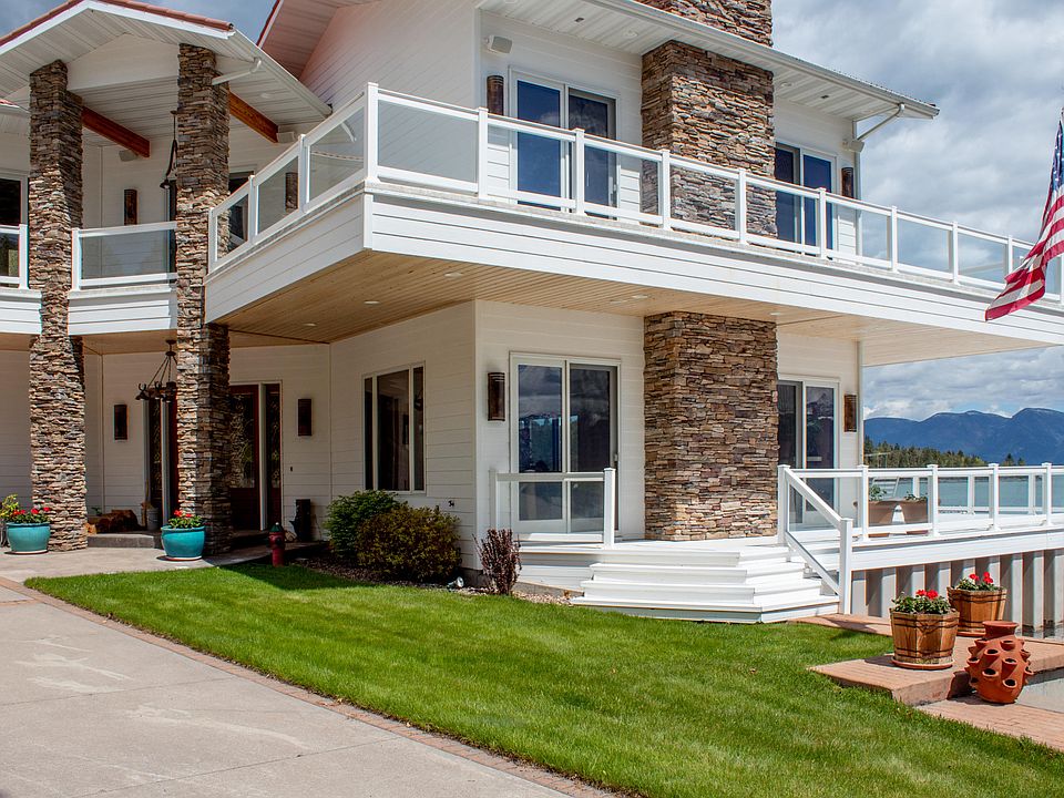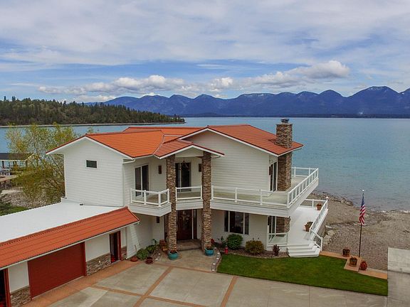 One of thee most Exquisite settings on Flathead Lake Montana close to Polson! The home sits ON the water! They do not allow this anymore, it is ''grandfathered in'', making it very rare and fun! It's like living on your boat! (your very large boat)! The home and grounds are meticulously cared for! Beautiful kitchen and living area, enormous master suite! Four separate suites for family and guests, 5 RV hook ups, w/dump station, incredible 60x90 TOY barn and separate apartment, incredible Harley room and den, room for all your cars, cycles, and boats to both work on them and store them in luxury or play in there on a rainy day! Also another 60'x90' shed for motorhome, machinery storage. Property is 4.97 acres, 163 ft Flathead Lake Front has your own concrete boat ramp and a massive dock for lake toys! 2022-01-26